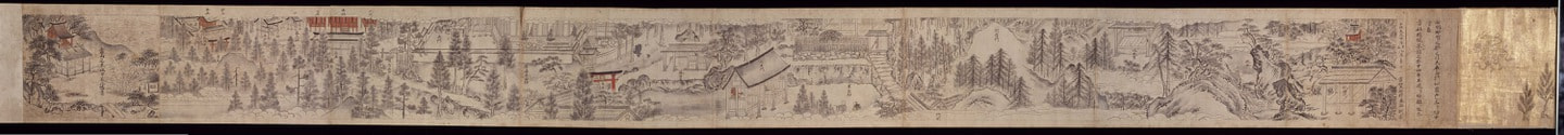 天暦3年(949年)には境内に尊勝寺(真言宗)が建立され、以降、大麻山神社は五社権現を合祀する両部神道の宮として尊勝寺別当が管理しました。戦国時代には戦火や火災により消失しましたがその後再建され、中世の最盛期には西の高野山とも呼ばれ大いに栄えました。その様子は天正20年(1592年)に描かれたとされる大麻山諸伽藍宮立坊中絵図〈島根県指定文化財〉からもうかがい知ることができます。